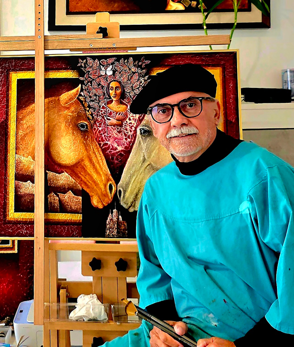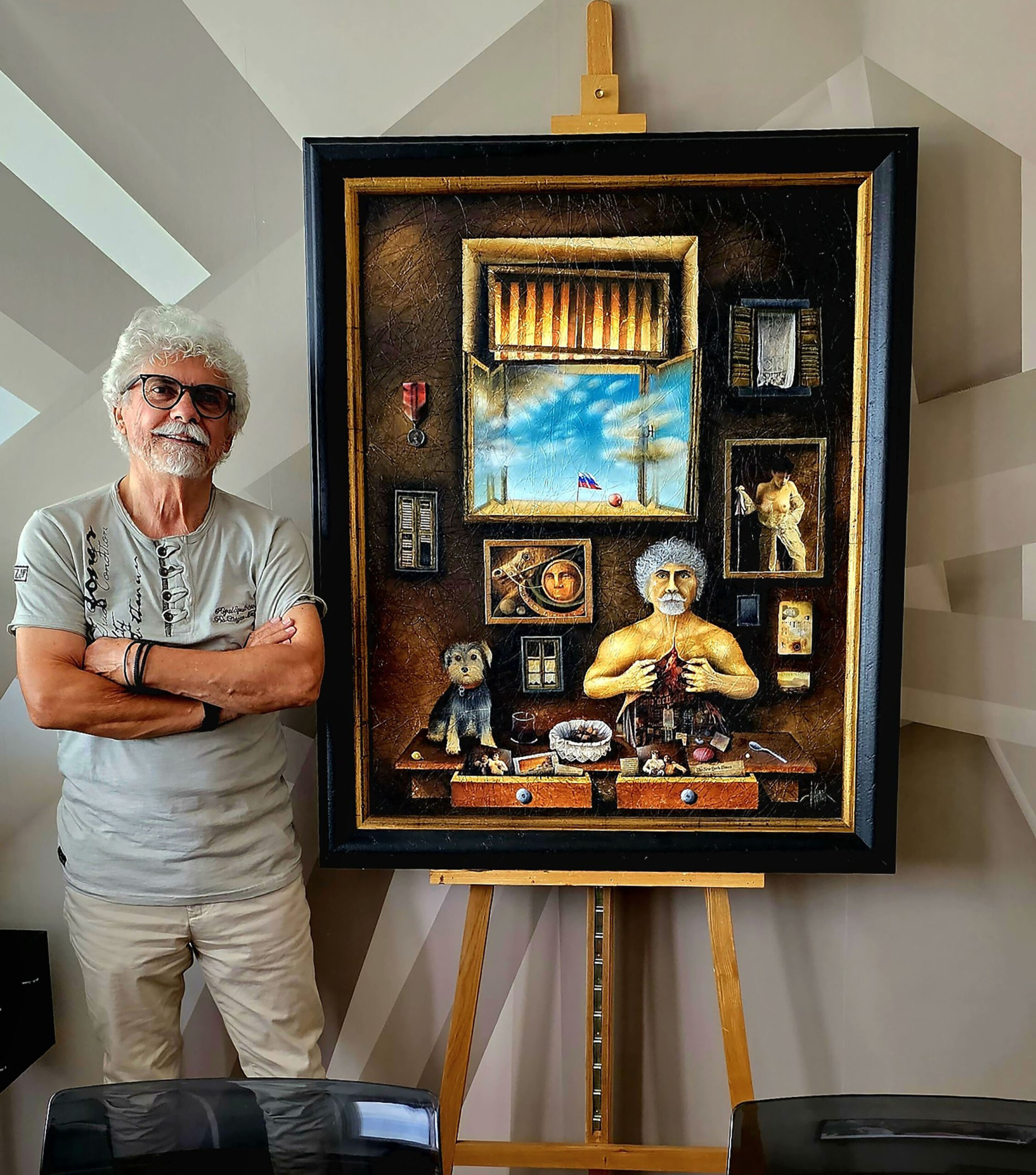 Born in 1952 Belgrade, my artistic journey began in the mountain town of Krusevo, Macedonia Europe’s highest altitude settlement. There, among church frescoes and my uncle’s stable animals, I discovered colors that would shape seven decades of creation. From the cultural crossroads of Sarajevo to the yacht ports of Vrsar, from Caribbean shores to Asian temples, I’ve carried my palette across five continents. Now based in Melbourne, I continue to transform life’s rich tapestry into art that breathes, incorporating real objects vintage postcards, hand-made lace, military medals into oil paintings that blur the line between memory and medium.