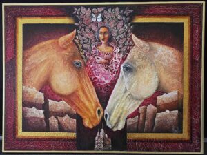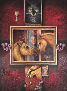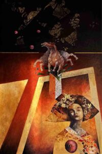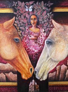 Horses often appear as central figures in his work, symbolizing strength, freedom, and resilience. Their graceful movement and powerful presence add both elegance and energy to his compositions. Through layered symbolism and refined detail, his paintings create a dialogue between the natural world and human emotion.